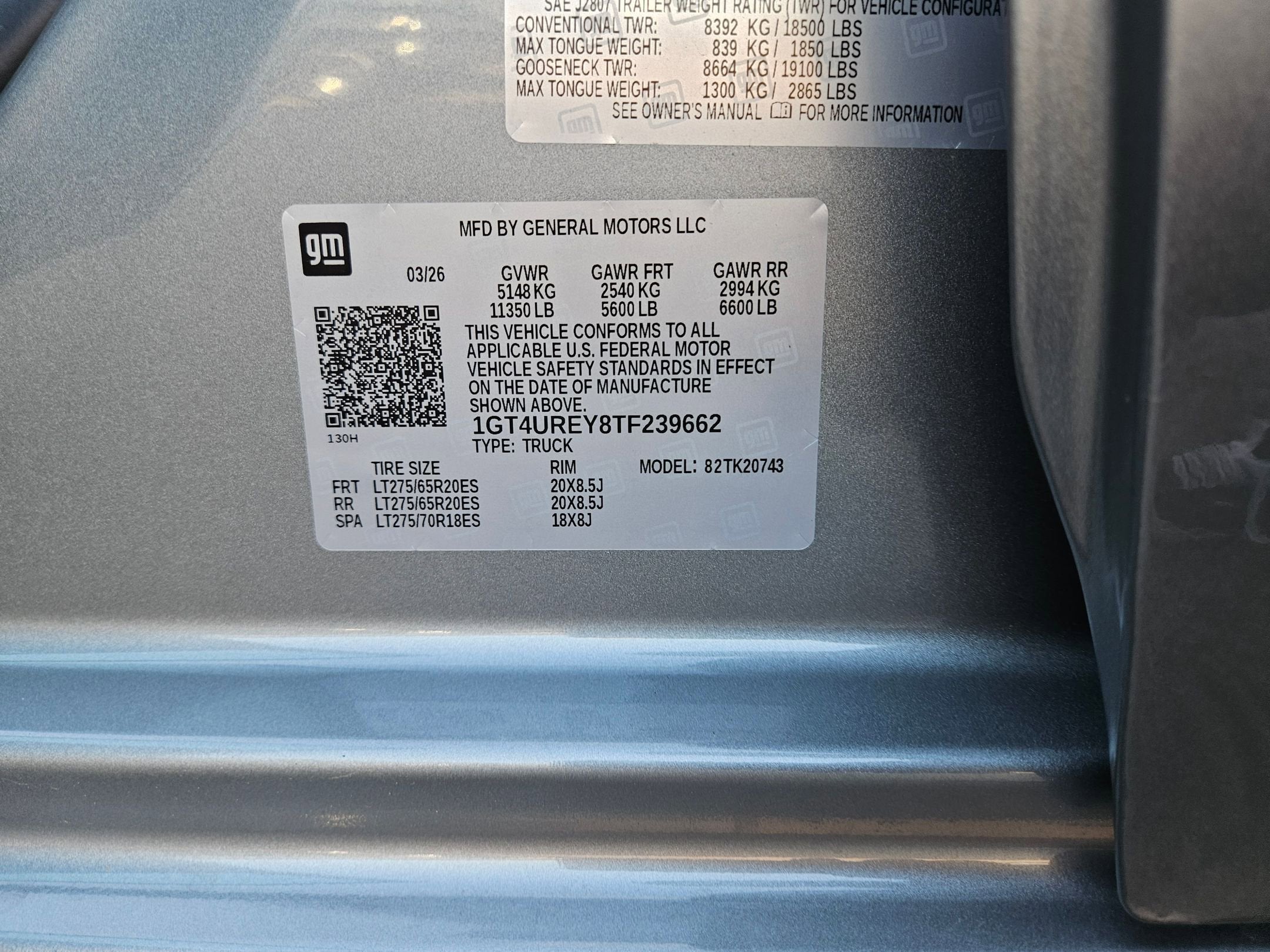 - 18" LT275/70R18 all-terrain, blackwall spare tire