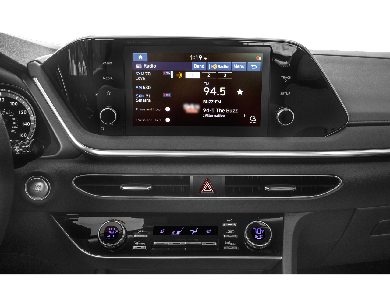 - Radio: AM/FM/MP3/HD/SiriusXM Display Audio -inc: 8" color touchscreen, 6 speakers (2 front door mounted speakers, 2 tweeters and 2 rear speakers), integrated Bluetooth®, Blue Link connected car system, Apple CarPlay, Android Auto and USB charge port